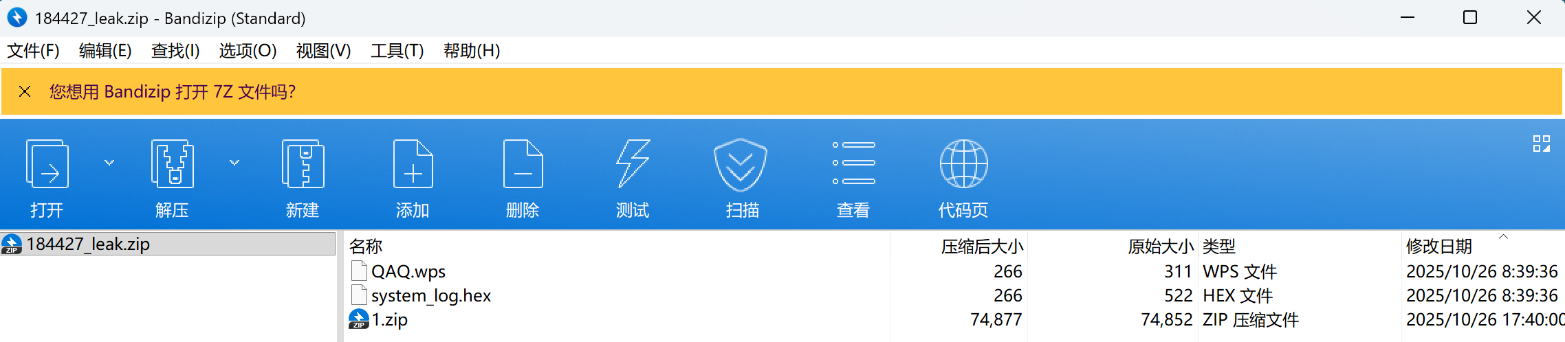 下载得到一个QAQ.wps,一个system_log.hex和一个1.zip。