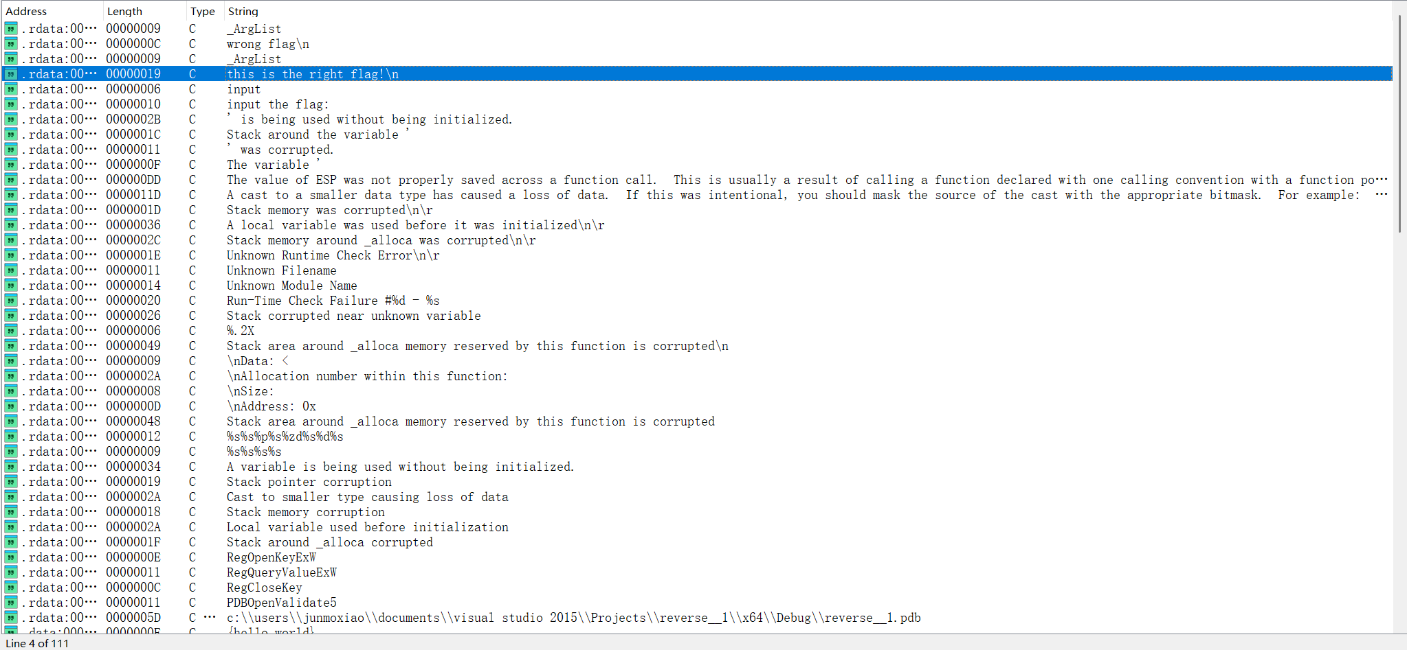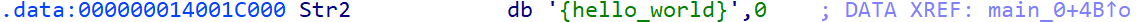 所以现在我们只要知道Str2究竟是啥就行了。双击Str2,可以看到Str2的初值是hello_world。db是define byte的意思,此处为字符串定义。